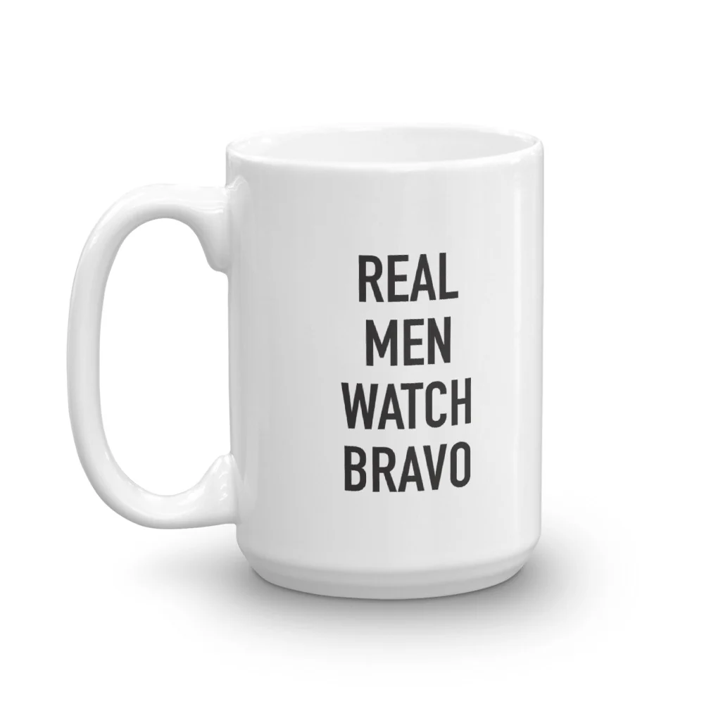 It takes a real man to watch Bravo. Now you can show off what kind of man you are with this classic ceramic white mug. Show your true manhood when drinking from this mug to show "Only Real Men Watch Bravo".